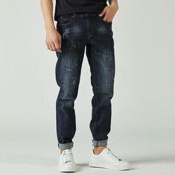 接下来,我们来看看这条牛仔裤的颜色和材质。从图片中可以看出,这条牛仔裤采用了深蓝色调,这种颜色既低调又百搭,非常适合日常穿着。至于材质,这条牛仔裤采用了高品质的牛仔布,手感柔软,透气性佳,即使在炎炎夏日也能让你感到舒适。